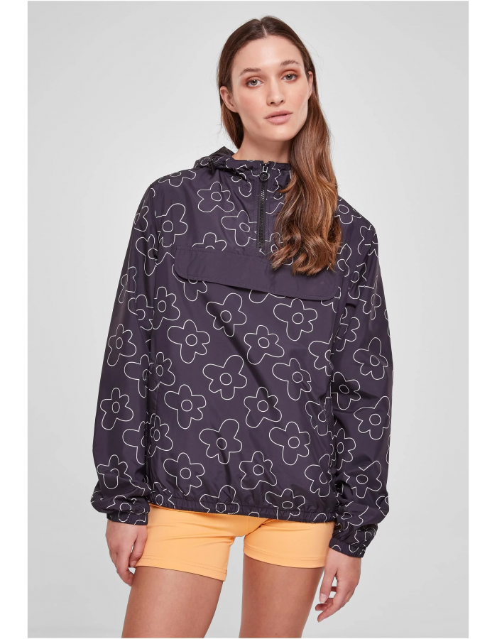Lehká dámská pulovrová bunda přesvědčí dynamickým vzhledem, který se hodí v mnoha situacích. Bunda je vybavena kapucí, elastickými šňůrkami se stopkami na lemu a kapuci, dále dvěma bočními kapsami na zip a doplňkovým zipem na krku. Falešná náprsní kapsa a jednoduchý květinový design uvolňují sako ženským způsobem. Použitým materiálem je odolný a přitom lehký polyester, zatímco podšívka je z taftu.