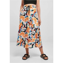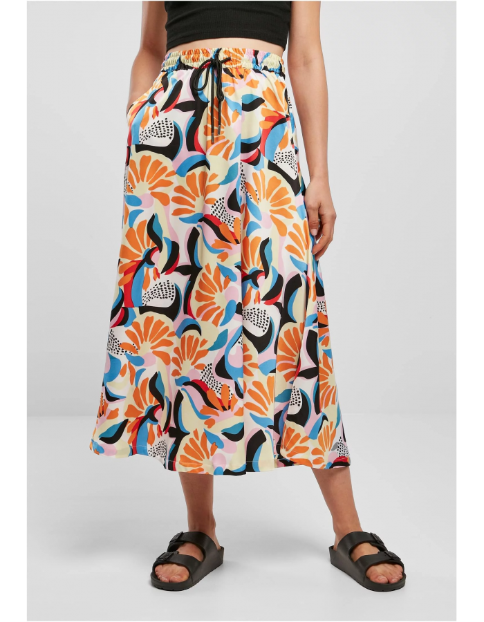Vzorovaná dámská sukně je široká a splývavá až po lýtko. Kromě volného střihu nabízí elastický pas s integrovanou stahovací šňůrkou příjemné pohodlí. Mezi praktické detaily patří boční kapsy. Moderní dámská sukně je vyrobena z nekomplikované viskózové tkaniny.