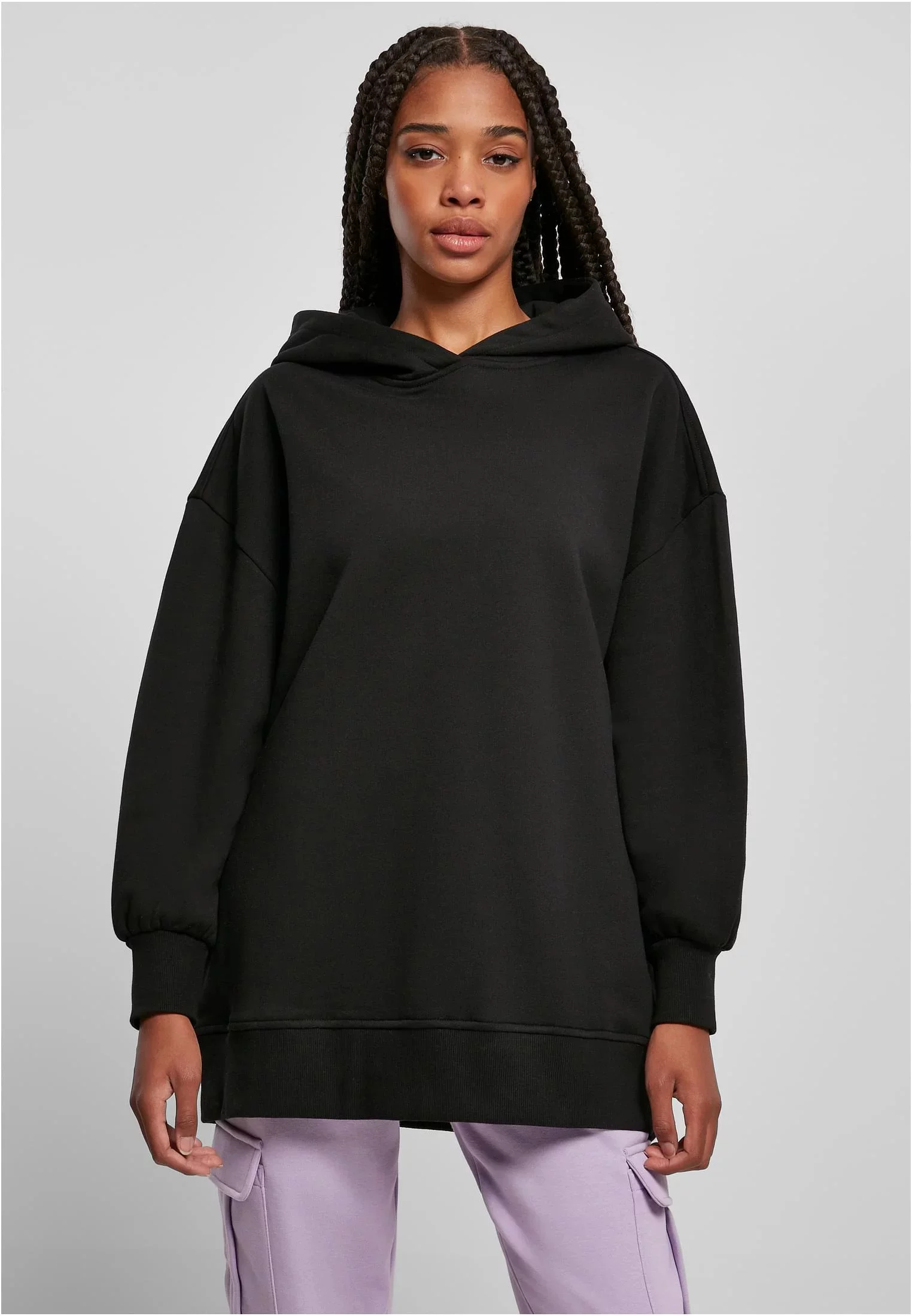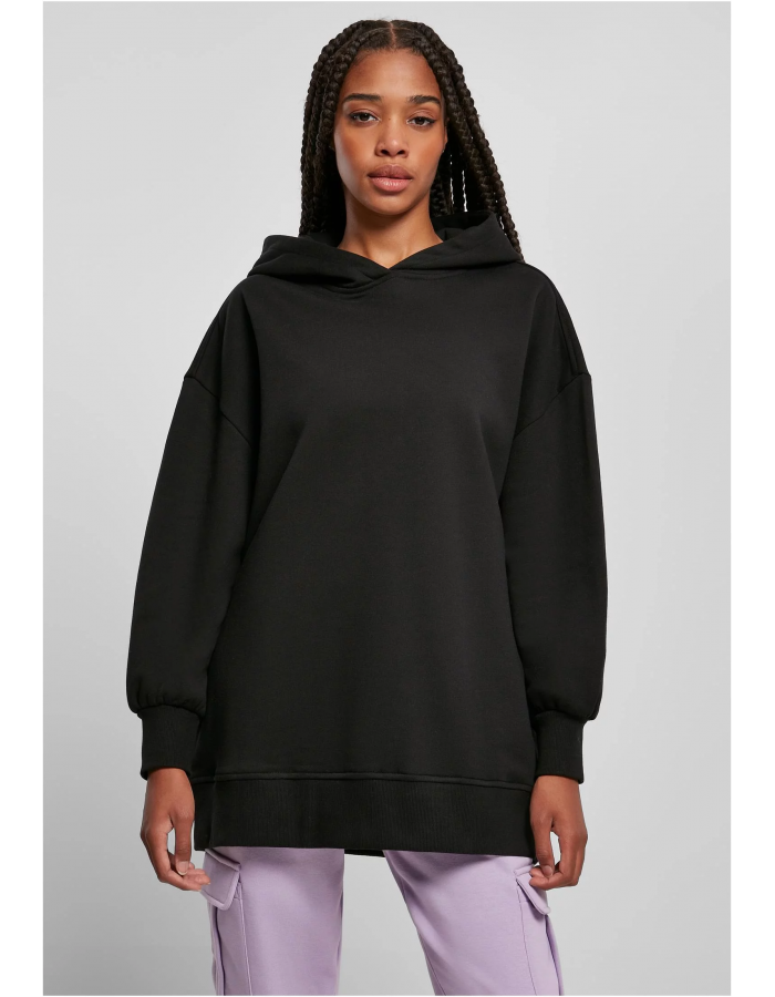 S vydařeným extra oversize střihem a nadměrnou délkou nabízí tato těžká dámská mikina s kapucí ve všem maximum. Jeho široké rukávy jsou vyrobeny se spadlými rameny, které jsou doplněny velkou, útulnou kapucí a širokými žebrovanými manžetami na rukávech a lemu. Velkoryse použitý materiál z hladkého česaného fleecu harmonicky završuje městský styl.