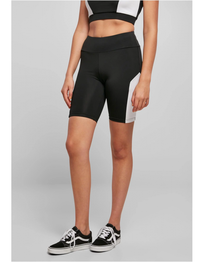 Moderní dámské cyklistické kraťasy potěší vysokým komfortem nošení a sportovním stylem. Vysoko posazený pas využívá integrovaný elastický pás, který zajišťuje optimální přizpůsobení. Je doplněna funkční tech strečovou žerzejovou tkaninou, která umožňuje úhledný úzký střih. Vzhled dámských cyklistických šortek určují vsadky na stehnech ve dvoubarevném blokovém provedení.