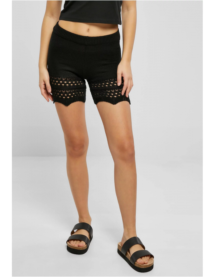 Tyto svůdné dámské šortky mají neobvyklý pletený a háčkovaný vzor, který zaručeně natočí hlavu tím správným směrem. Použitá jemná akrylová tkanina je na pokožce příjemně hladká, zatímco přiléhavý pas drží šortky na místě. Spodní část je vyrobena s okouzlujícím háčkovaným vzorem a je zakončena vlnitým lemem.