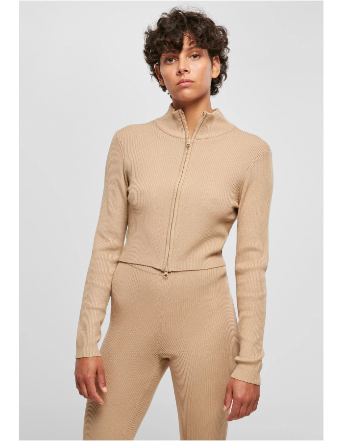 Dámský svetr se zastřiženým žebrovaným úpletem na zip unionbéžový L