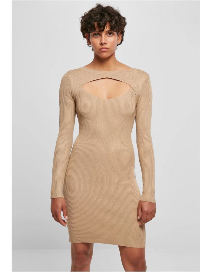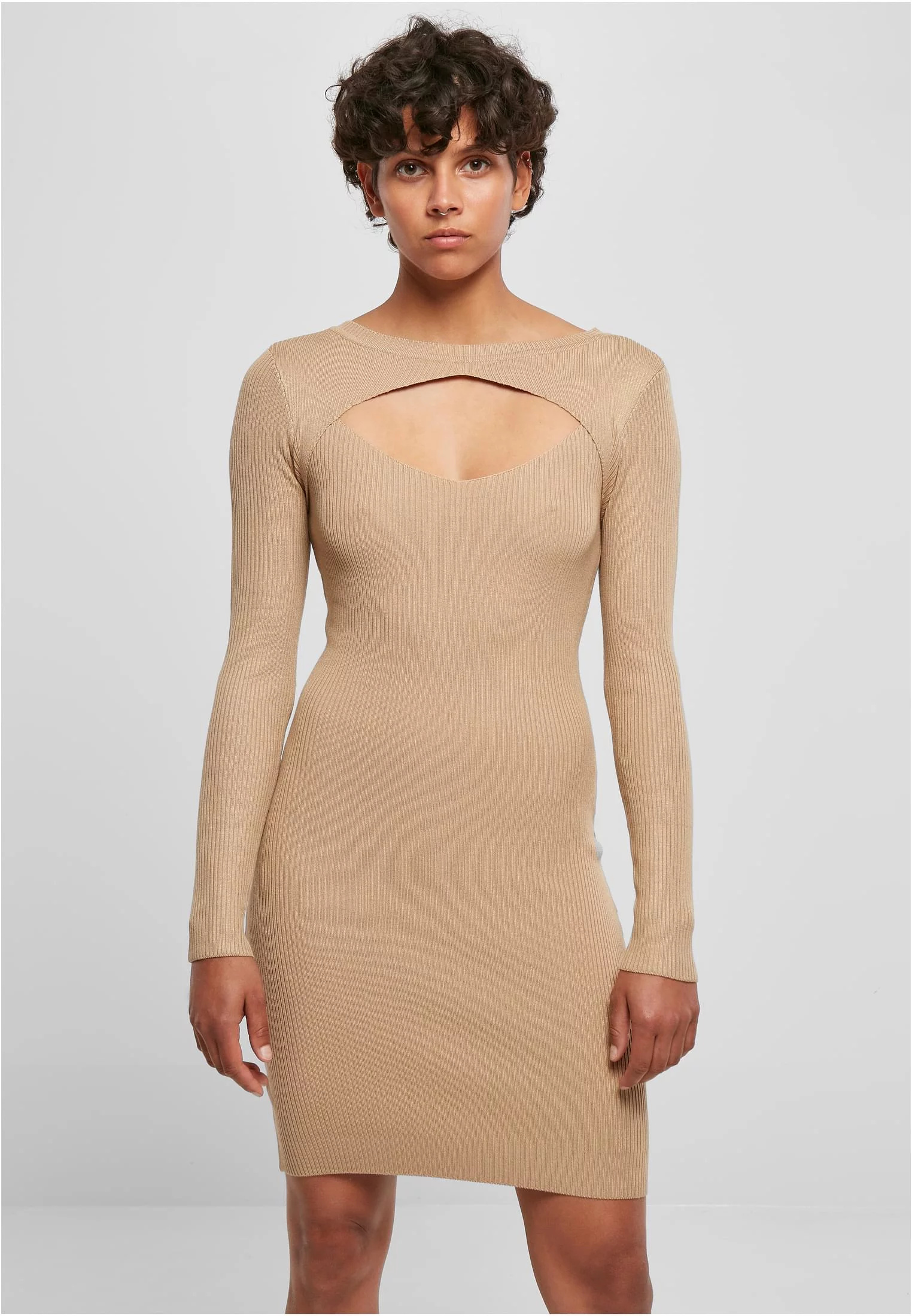 Šaty pro velký nádech – dámské vystřižené šaty extravagantně předvádějí žebrovaný úplet s přiléhavým střihem a klíčovou dírkou ve tvaru diamantu. Měkký žebrovaný úplet perfektně sedí a nabízí skvělý pohyb navzdory velmi padnoucímu střihu – dobrá volba, pokud chcete na další párty rozhýbat taneční parket.