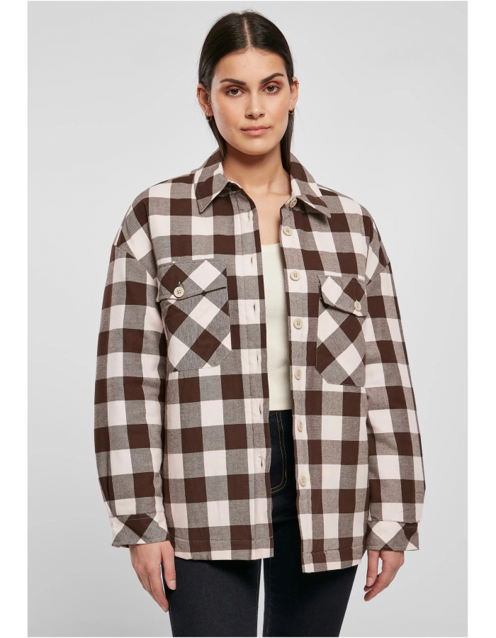Dámská flanelová vycpaná overshirt růžová/hnědá