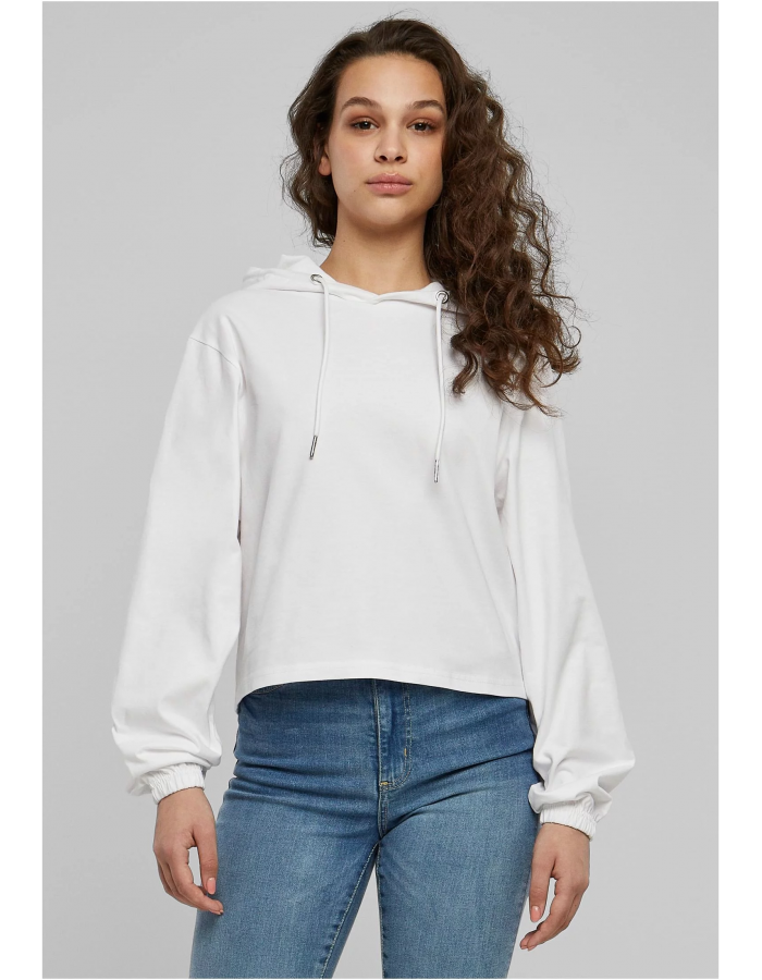 Sportovní, ležérní představuje dámský svetr s kapucí. Samozřejmě nesmí chybět kapuce a elastické manžety na rukávech a lemu. Zvláště cool: krátký střih a pohodlný oversize střih s překrývajícími se rameny.