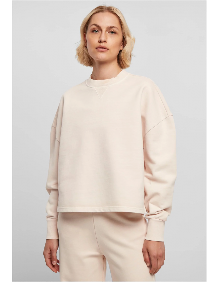 Dámský výstřih je sportovní a ležérní společník, který nabízí bělené prádlo, masivní oversize střih se spadlými rameny a mírně rozparkovanými bočními švy. Vložka do V na přední straně žebrovaného krku dodává další akcent. Široké manžety rukávů jsou také žebrované a dámský výstřih je vyroben z těžké froté bavlny.