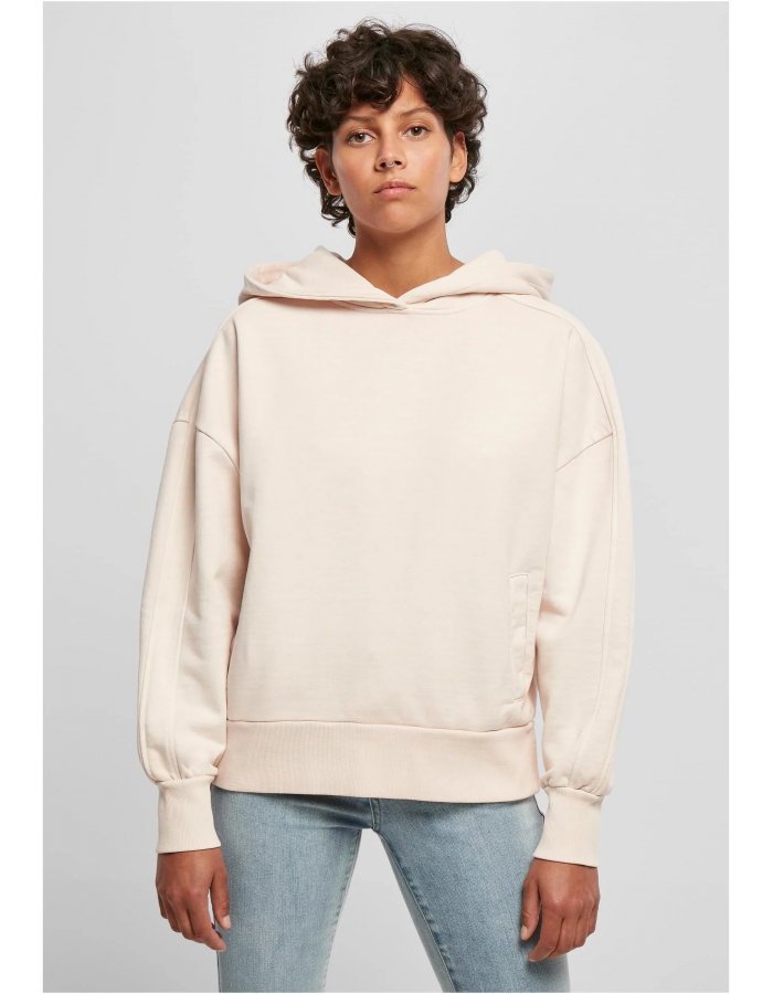 Tato svěží dámská mikina s kapucí představuje trendy styl, který se skládá z lehce běleného prádla a sofistikovaných detailů. Vsadky vedou přes ramena a vnější rukávy i centrálně přes kapuci. Mikina má dvě praktické boční kapsy a široké žebrované manžety na rukávech a lemu. Pohodlný oversize střih se spadlými rameny a těžká a hladká froté bavlna poskytují optimální pohodlí při nošení.