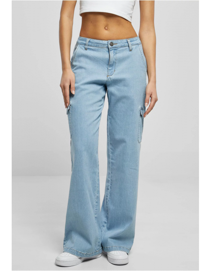 Dámské džíny High Waist Straight Denim Cargo - modré Velikost: 27