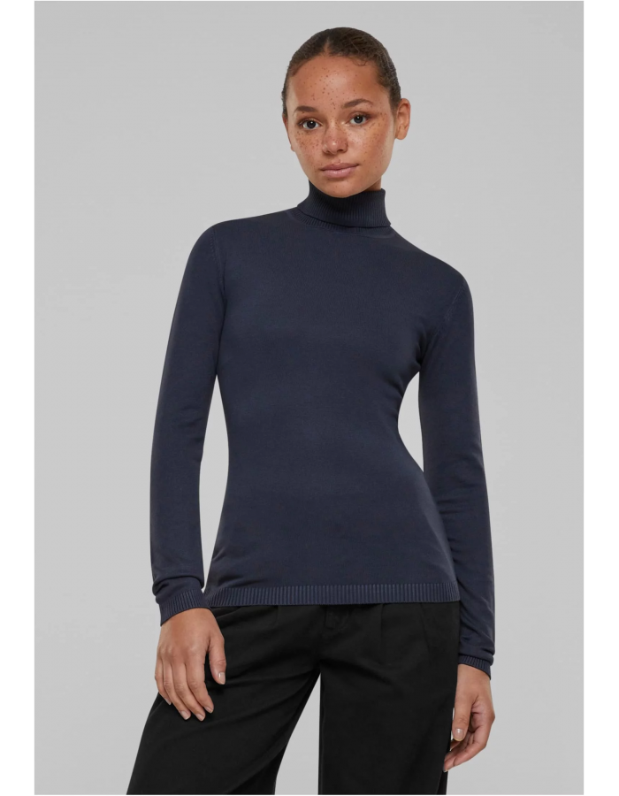 Dámský pletený svetr s rolákem, který kombinuje eleganci a pohodlí. Svetr je vyroben z hladké směsi viskózy a nylonu, což mu dodává vynikající pocit, zatímco jemná pletená struktura poskytuje stylový vzhled. Díky slim fit střihu se svetr dokonale přizpůsobí tvaru těla své nositelky a decentně podtrhne siluetu. Dlouhé rukávy navíc zahřejí i v chladnějších dnech, zatímco rolák završuje design s klasickým nádechem a ochranou před chladnými poryvy. Nezbytný základ.