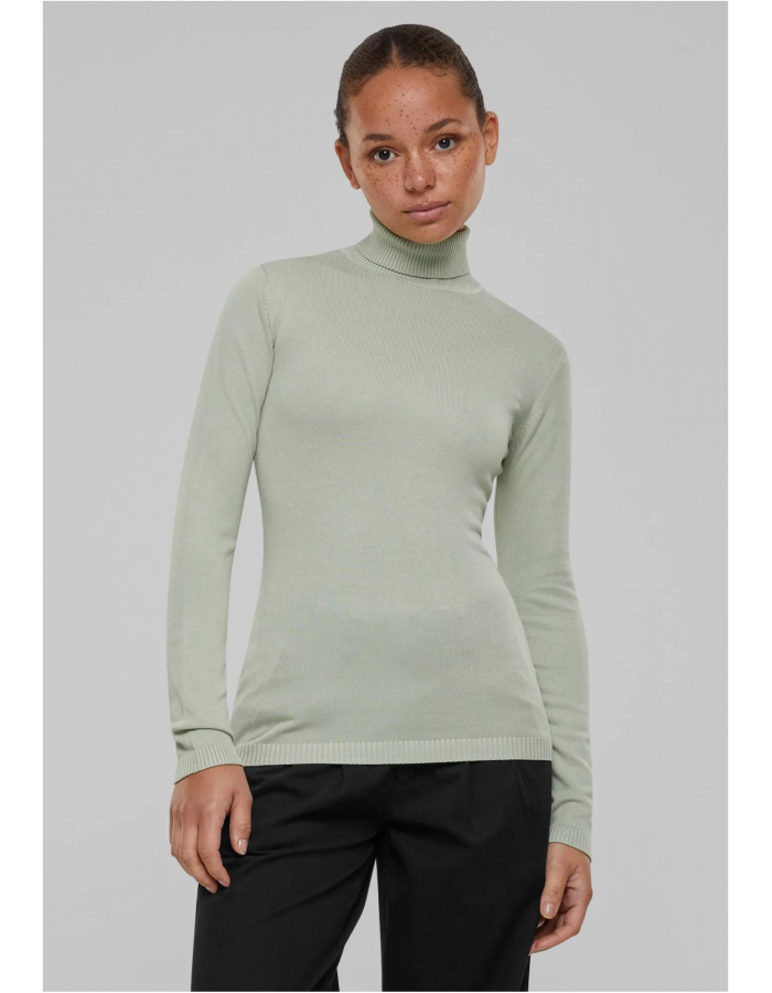 Dámský pletený svetr s rolákem, který kombinuje eleganci a pohodlí. Svetr je vyroben z hladké směsi viskózy a nylonu, což mu dodává vynikající pocit, zatímco jemná pletená struktura poskytuje stylový vzhled. Díky slim fit střihu se svetr dokonale přizpůsobí tvaru těla své nositelky a decentně podtrhne siluetu. Dlouhé rukávy navíc zahřejí i v chladnějších dnech, zatímco rolák završuje design s klasickým nádechem a ochranou před chladnými poryvy. Nezbytný základ.