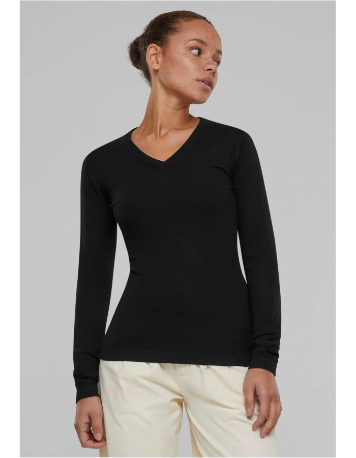 Tento jednoduchý dámský svetr je jednoduchý základ pro každý den. Charakteristická struktura jemného úpletu zajišťuje jemný, útulný vzhled, zatímco úzký střih zdůrazňuje postavu. Pletený svetr se skládá z kombinace viskózy a nylonu, díky čemuž je obzvláště poddajný a pohodlný na nošení. Výstřih do V naopak nabízí klasický nádech a snadné sladění s ostatními kousky oblečení.