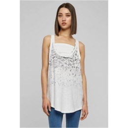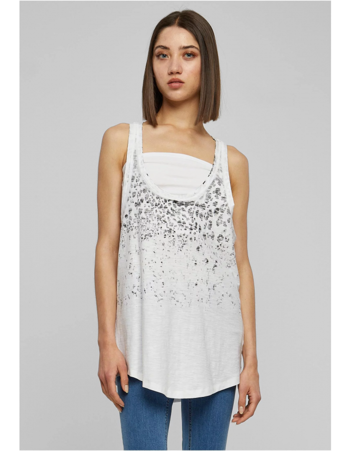Ladies Long Leo Print Loose Tank wht/blk XS