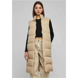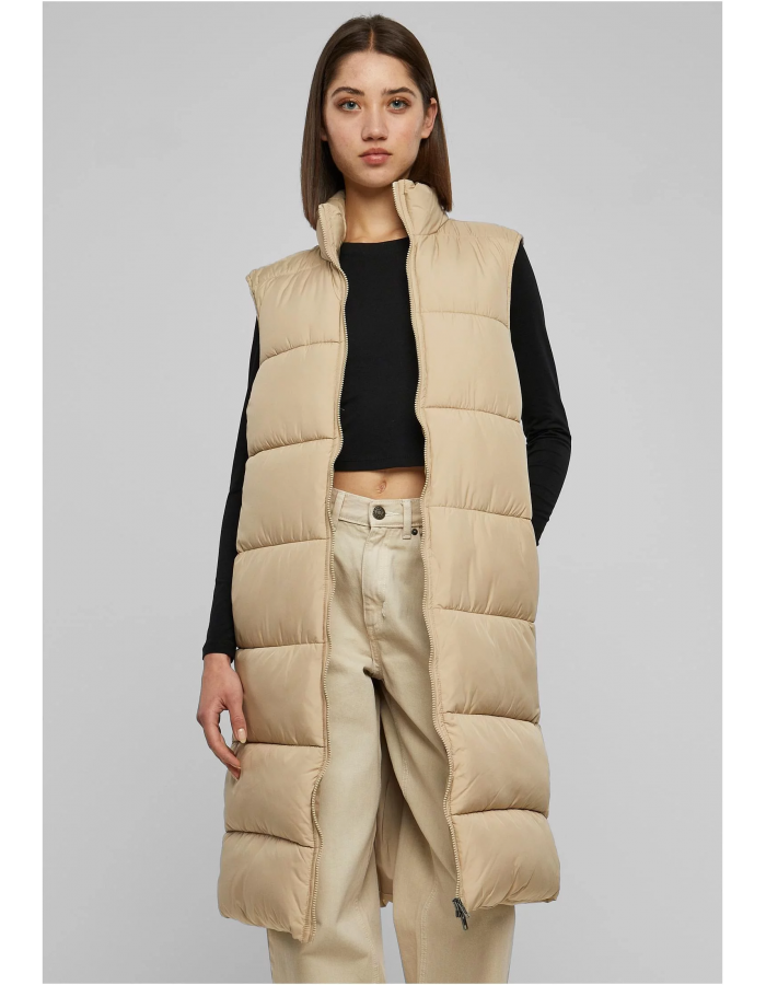 Dámská dlouhá vesta je skvělým hybridem bundy a kabátu. Křížové švy zdůrazňují silné prošívání a poskytují dobře známý puffer vzhled. Nevšední kousek oblečení se vyznačuje i působivou délkou, která sahá až ke kolenům. Dále je dámská vesta vybavena vysokým stojáčkem, bočními kapsami a zipem na oblékání. Extra pohodlí při nošení přináší volný střih. Materiál puffer vesty je robustní Terylen. Je navíc podšitá taftem.