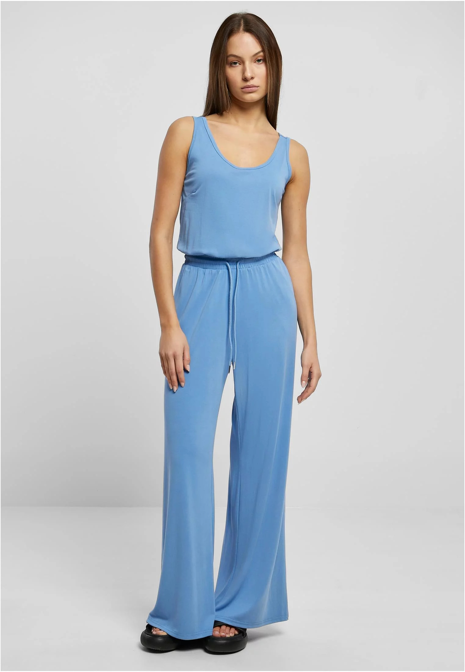 Sexy módní kousek pro všechny dámy, které mají rády pozornost – kombinéza představuje svůj horní díl v podobě vzdušného topu a kombinuje jej s širokými, dlouhými a splývavými nohavicemi. Elastický pas se stahovacími šňůrkami zajišťuje pohodlí i tvar. Kromě toho má onesie široká ramínka a hluboký kulatý výstřih na přední a zadní straně. Spolu s ležérním volným střihem a jednobarevným vzhledem nabízí hladká, pružná modalová žerzejová tkanina prémiovou přitažlivost.