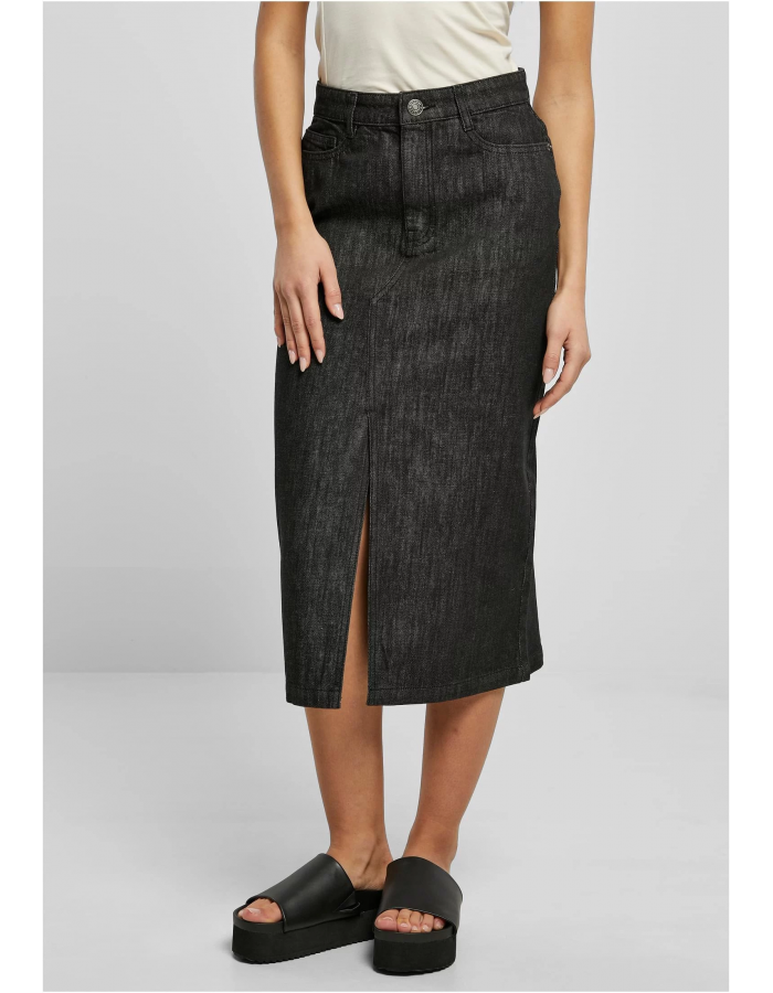 Tato dlouhá a rovná džínová sukně, navržená s asymetrickým střihem vpředu a vysokým rozparkem, přitahuje pozornost. V pase jsou poutka na opasek, dvě boční kapsy, knoflík a zip. Její styl doplňují dvě našité zadní kapsy. Sukně je vyrobena z hladké džínové bavlny a má regular fit.