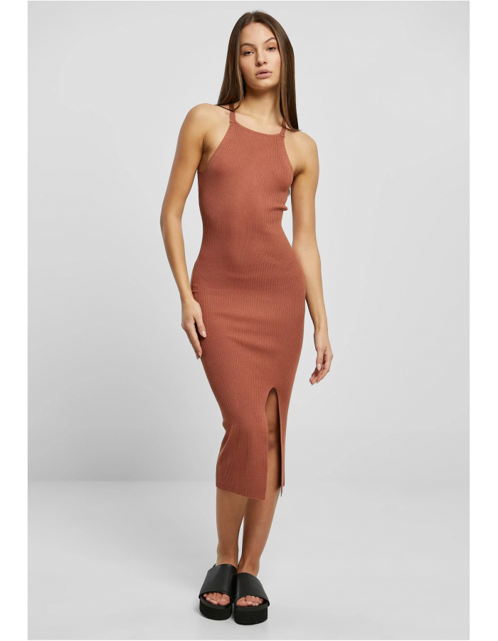 Dámské šaty s midi žebrovým úpletem z terakoty L