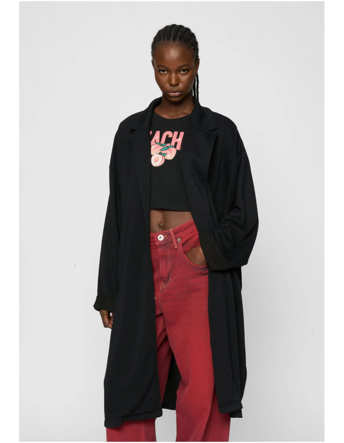 Módní klasika se mění v nejlepší streetwear: super široký dámský kabát je inspirací nadčasových modelů. Nabízí velký ohrnutý límec a široké manžety, padá daleko a rovně v délce ke kolenům a je doplněn kapsami. Oversized kabát je vyroben z hladkého a elastického francouzského froté.
