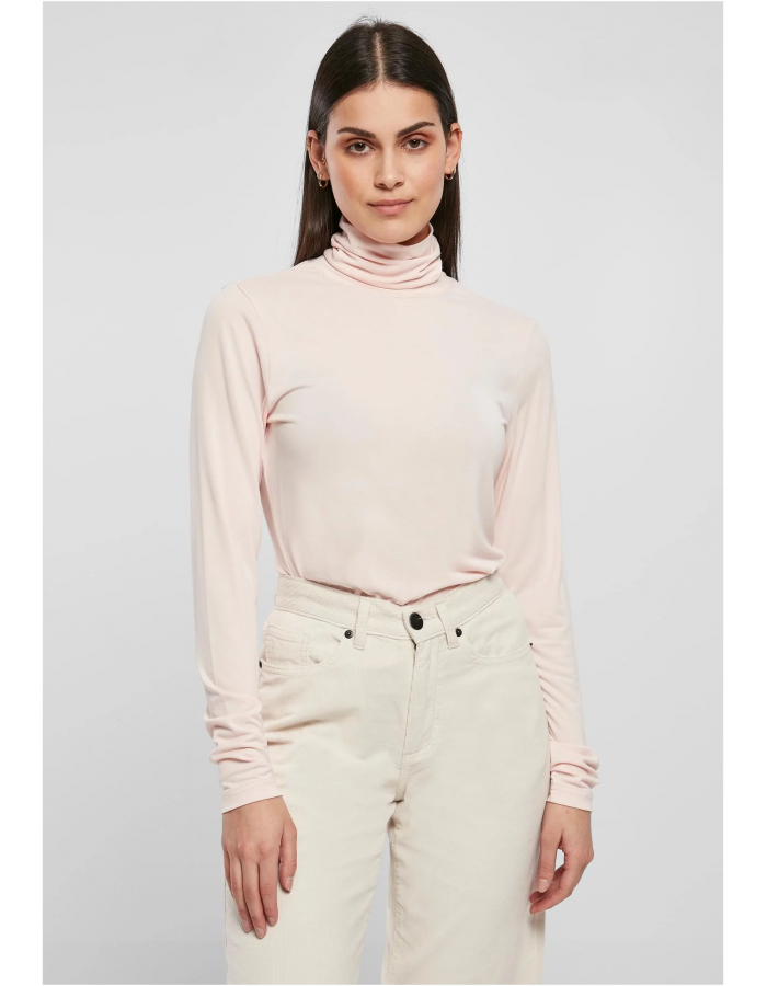 Jednoduchý a elegantní dámský svetr s rolákem. Jeho jemný materiál vyrobený z modalového žerzeje zajišťuje nebeské pohodlí při nošení. Decentní, jednobarevný dámský top je vybaven dlouhým rukávem a má pravidelný střih. Ideální pro středně pokročilé dny nebo neformální večeře.