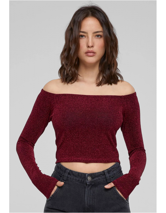 Dámské třpytivé třpytky s dlouhým rukávem vínové L