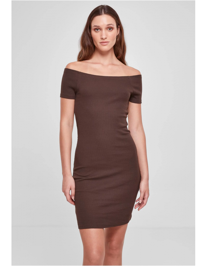 Dámské šaty Off Shoulder Rib hnědé Velikost: XL