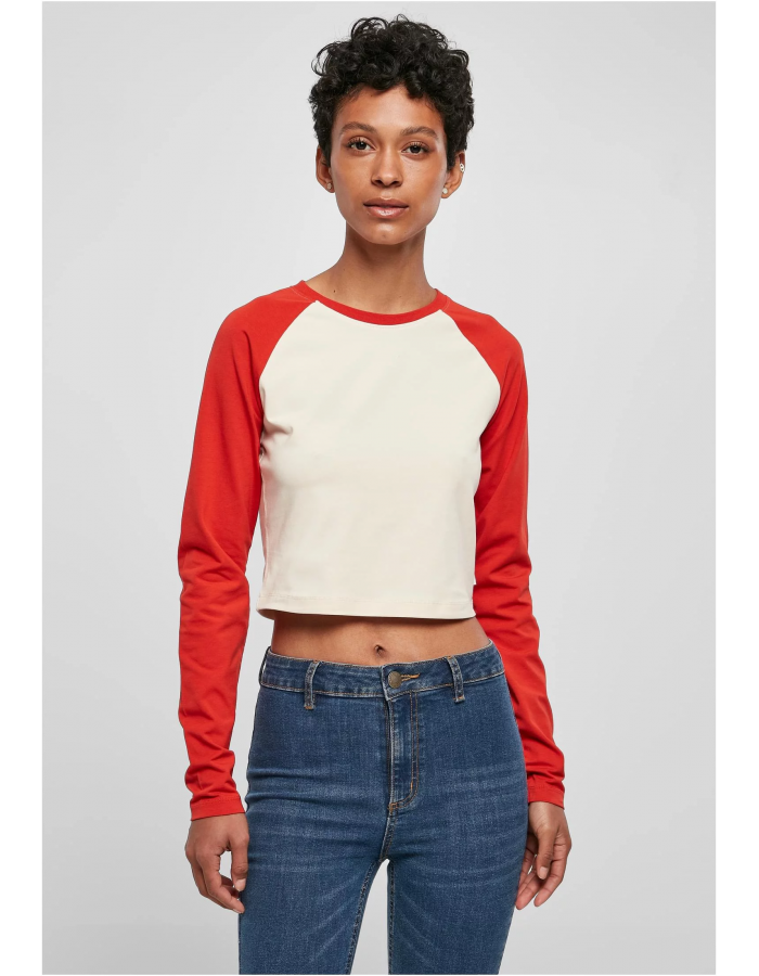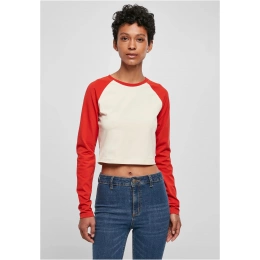 Dámské organické zkrácené retro baseballové dlouhé rukávy s bílým pískem/velké XS
