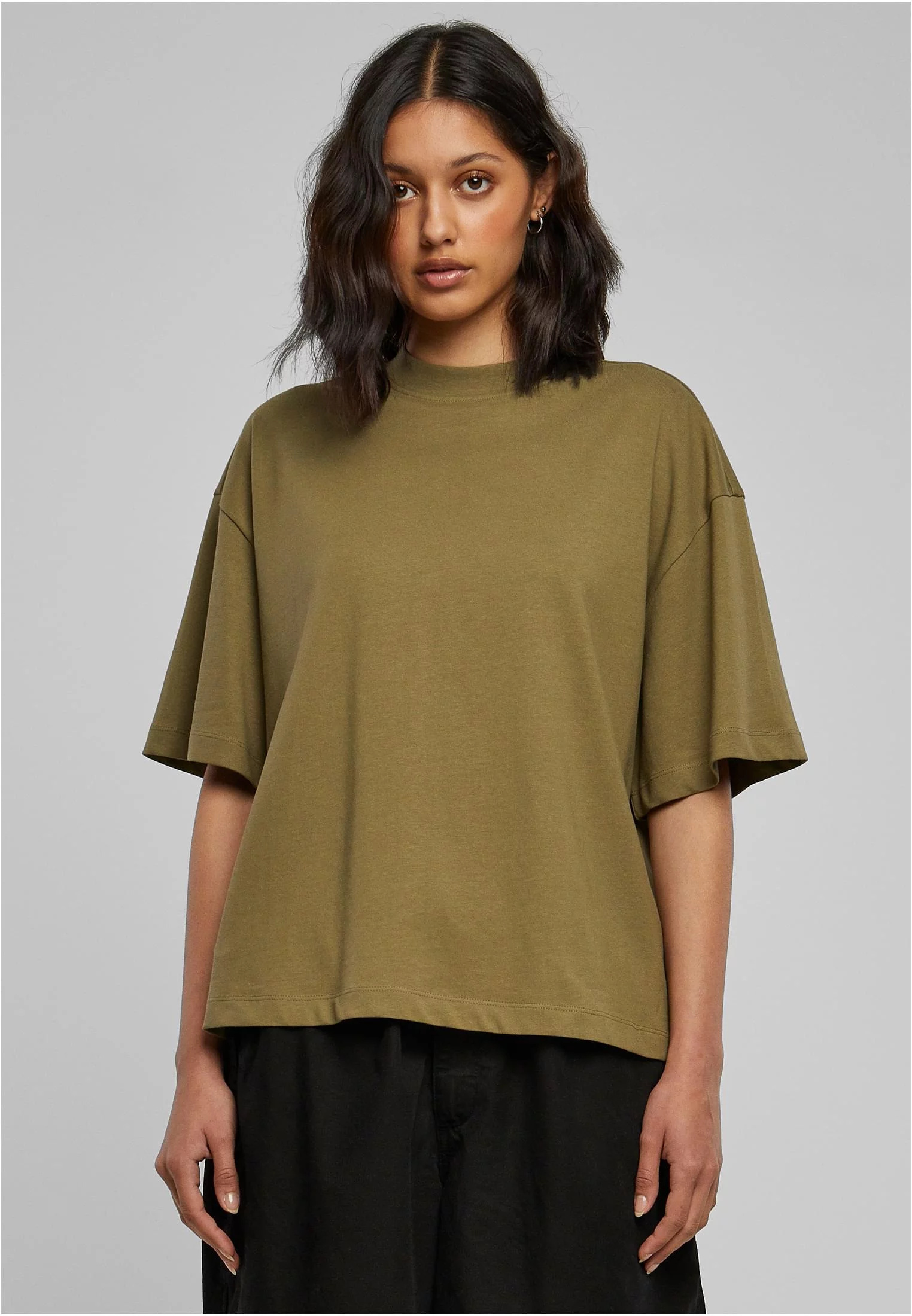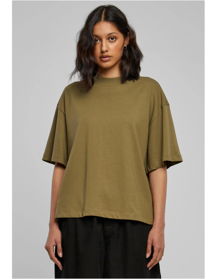 Dámské organické těžké triko s rozparkem tiniolive S