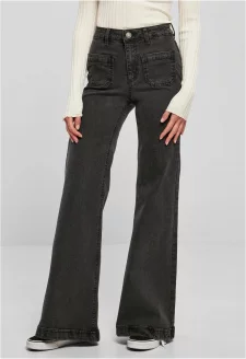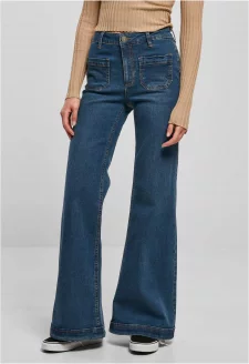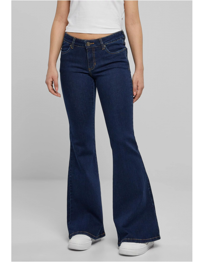 Dámské džíny jsou střihu slim fit a nabízejí nízký pas a rozšířené nohavice. Styl dotvářejí boční kapsy a našité zadní kapsy. Džíny jsou vyrobeny z džínové bavlny, převážně z organické bavlny, a malého množství elastanu, aby co nejlépe padly.