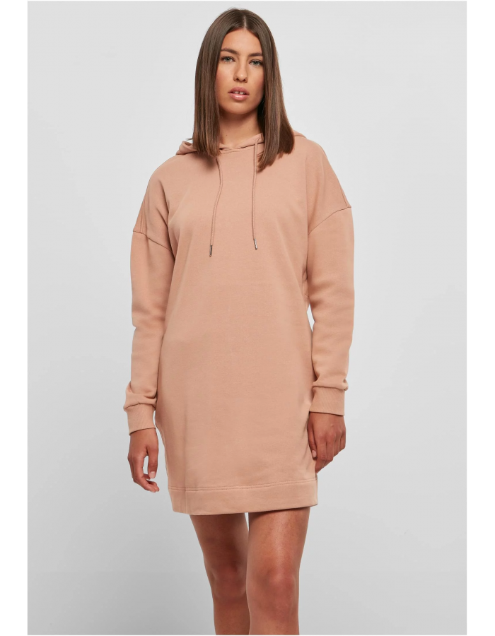 Tyto výjimečné minišaty jsou založeny na bokovém střihu s kapucí a vyzařují sexy chlad. Dámské šaty mají pravidelný střih a nabízejí dvě praktické boční kapsy, velkou kapuci s kovově zakončenými šňůrkami a pohodlné manžety na rukávech a spodním lemu. Byl důmyslně tvarován dělícími švy vzadu. Atraktivní mikiny s kapucí uspokojí i hladké froté z organické bavlny. Minišaty završuje organické označení a štítek s boční vlajkou.