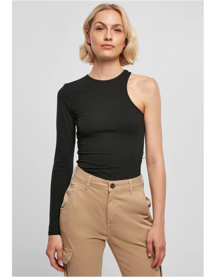 Díky volným ramenům ve stylu racerback a kontrastnímu dlouhému rukávu na druhé straně je toto body trendy. Má kulatý výstřih, má úzký střih a je vyrobena z pohodlného strečového žerzeje vyrobeného z organické bavlny a elastanu. Jednodílný oblek se snadno zapíná na kovové druky v rozkroku.