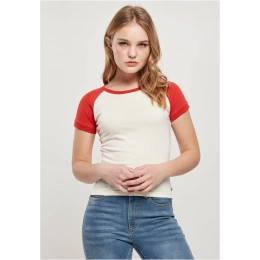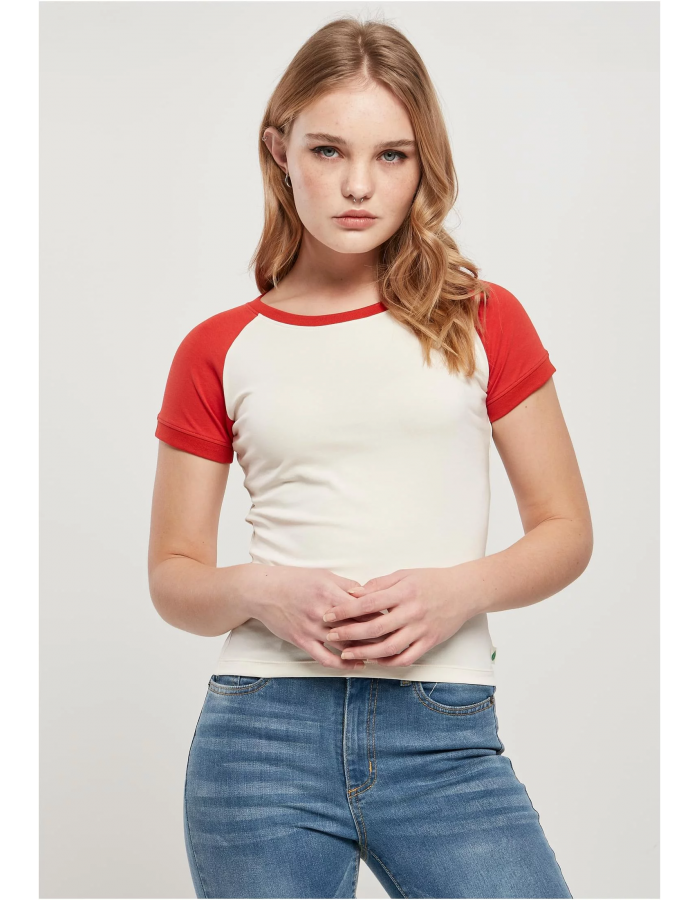 Dámské organické strečové krátké retro baseballové tričko whitesand/hugered 4XL