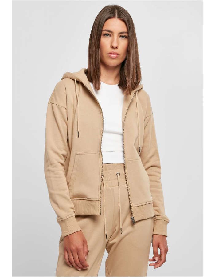 Dámská bio froté mikina s kapucí na zip v béžové barvě