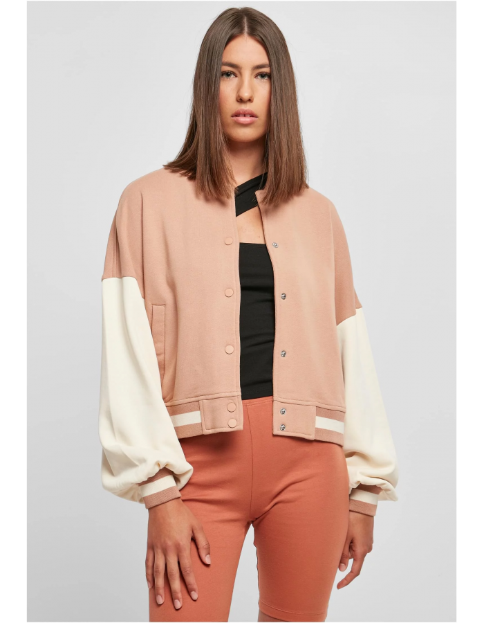 Povedené dámské dvoubarevné vysokoškolské sako maximálně uspokojí. Pletené manžety na lemu, límci a rukávech jsou stylizované ve dvou různých barvách a dodávají bundě její vysokoškolský vzhled. Dvě kapsy bundy mají zapínání na knoflíky a hlavní přední zapínání. Široké rukávy se nabírají na manžetách a poskytují dodatečný ženský nádech. A konečně, oversized střih s odpovídajícími spadlými rameny zajišťuje svěží a trendy designový povrch.