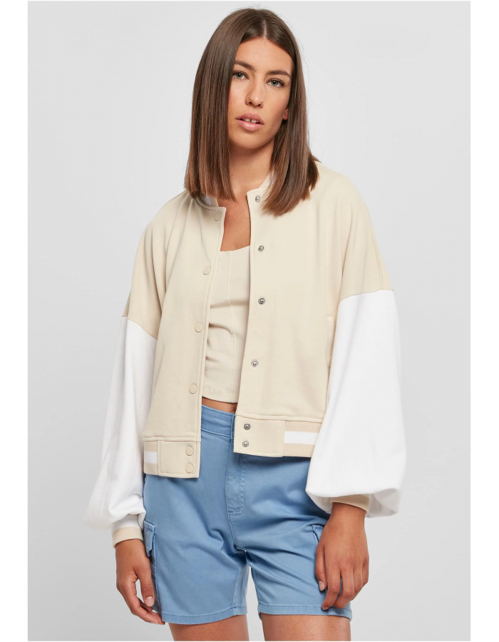 Dámská oversized dvoubarevná College froté bunda softseagrass/bílá L