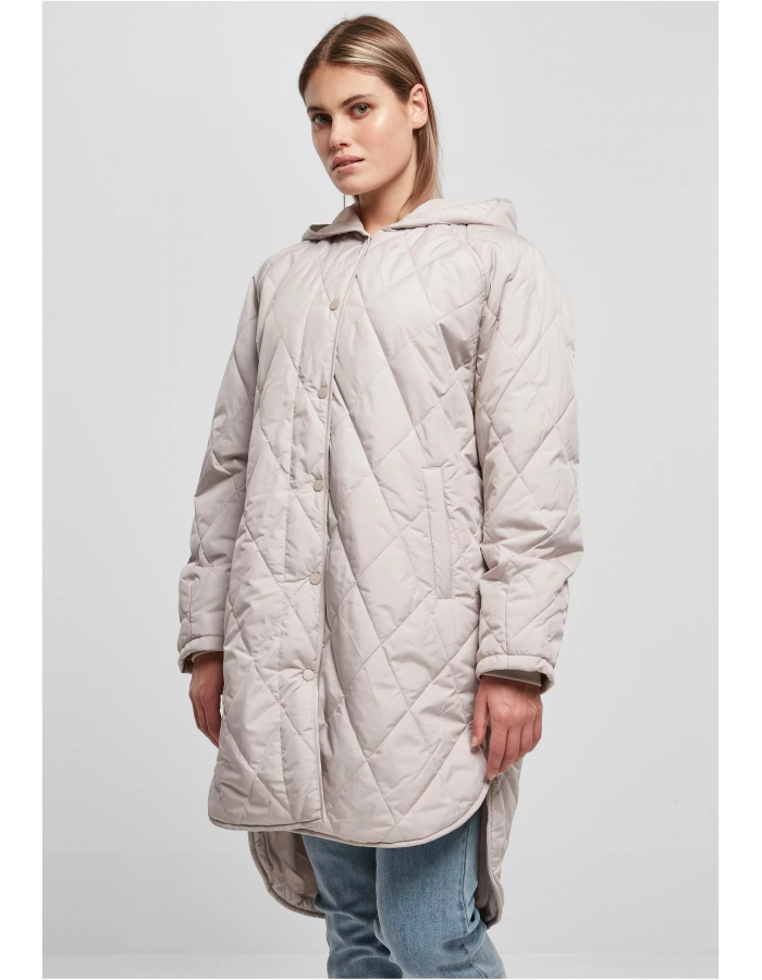 Tento dámský vycpaný kabát s diamantovým prošíváním upoutá pozornost. Je také vybavena výrazně delšími zády, zaobleným předním lemem a rozparky na bočních švech. Rukávy jsou v raglánovém stylu a pro zapínání je k dispozici praktický proužek na knoflíky. Vzhled doplňuje velká kapuce a boční kapsy. Dámský kabát je vyroben z polyesteru a podšitý jemným taftem.