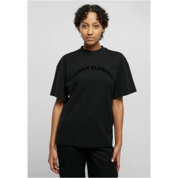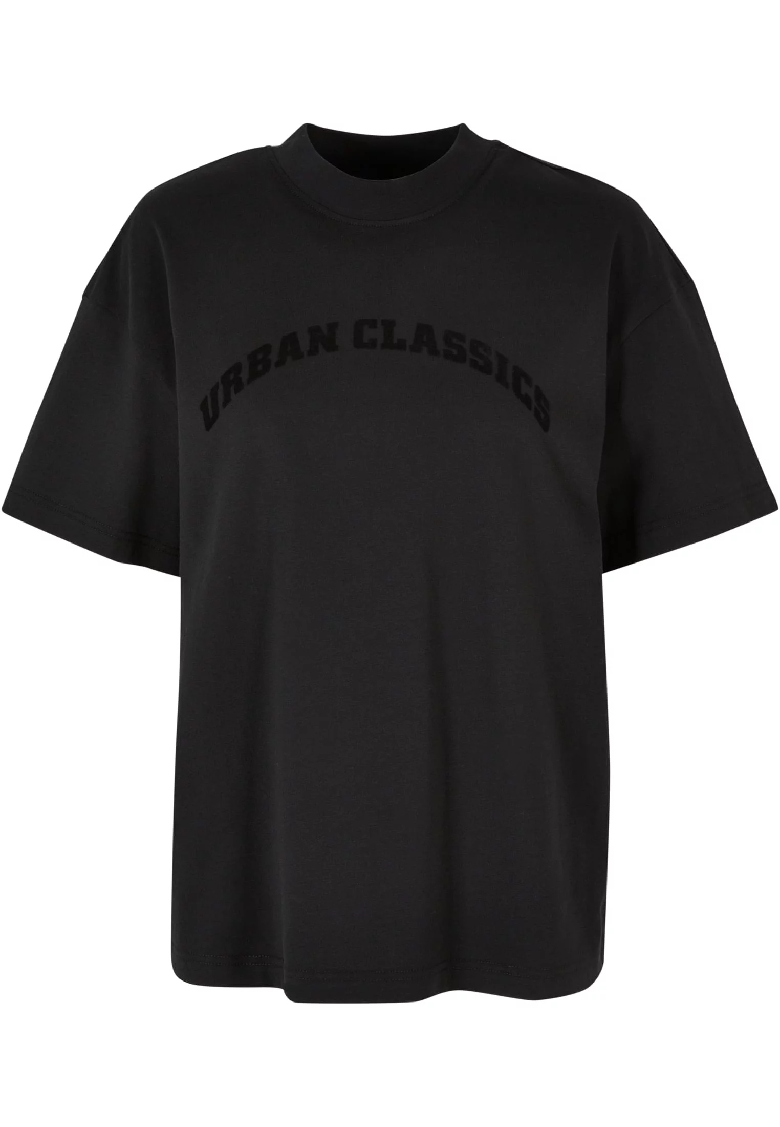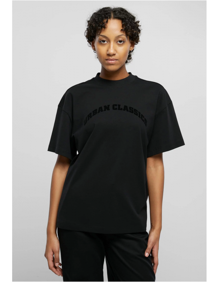 Dámská košile je vyrobena s tónovaným vločkovým potiskem na hrudi – v podobě půlkulatého nápisu Urban Classics. Je také vybavena výstřihem a ležérním oversize střihem s mírně spadlými rameny. Svršek je vyroben z hladké bavlněné látky.