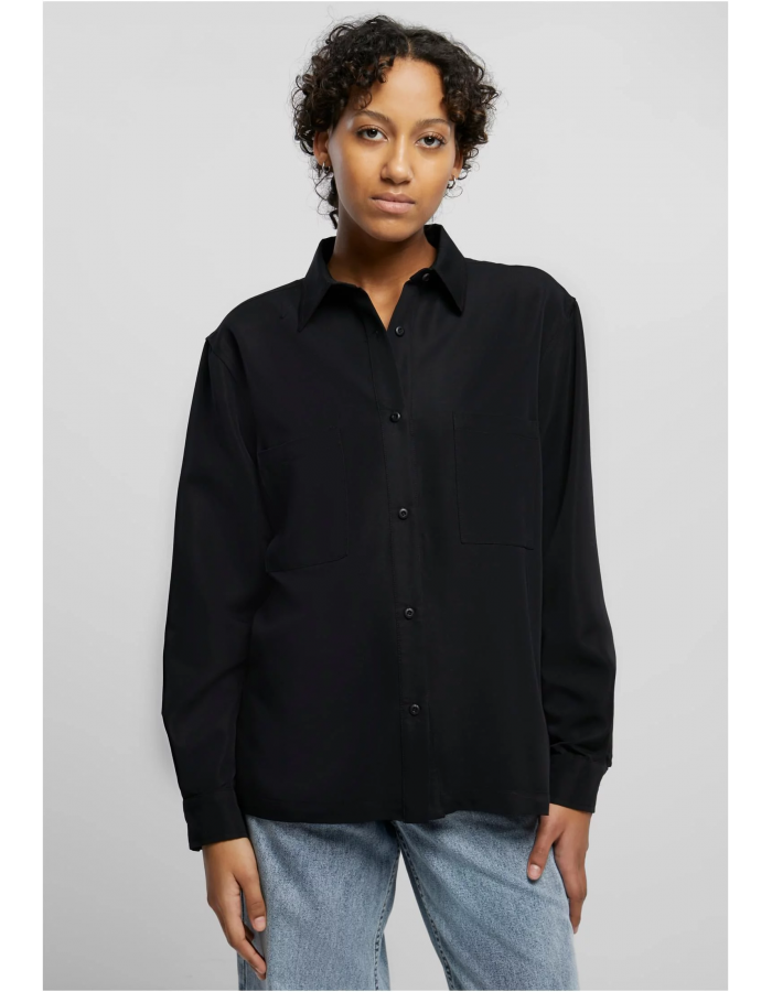 Navzdory nonšalantnímu vzhledu vytváří tato halenka s dlouhým rukávem skvělou postavu. Nabízí klasický límec a knoflíkovou légu a má mírně rozparkované boční švy. Městský vzhled podtrhují dvě našité náprsní kapsy a široký oversize střih se spadlými rameny. Je vyrobena z kepru. V neposlední řadě je střih blůzy optimalizován zadním sedlem.
