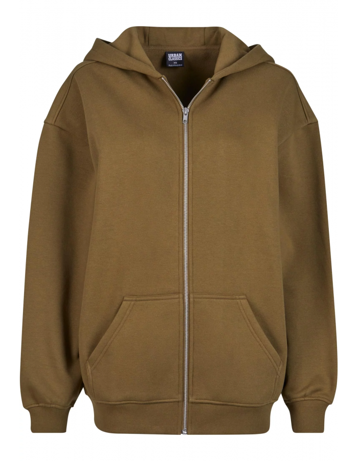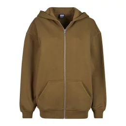 Těžká dámská mikina s kapucí na zip nabízí velkorysý střih a extra oversize střih. Mezi vlastnosti patří velká kapuce, zip, klokaní kapsa a široké žebrované manžety na rukávech a lemu. Hladký česaný fleecový materiál zajišťuje dokonalé pohodlí při nošení a ležérní vzhled útulné mikiny na zip.