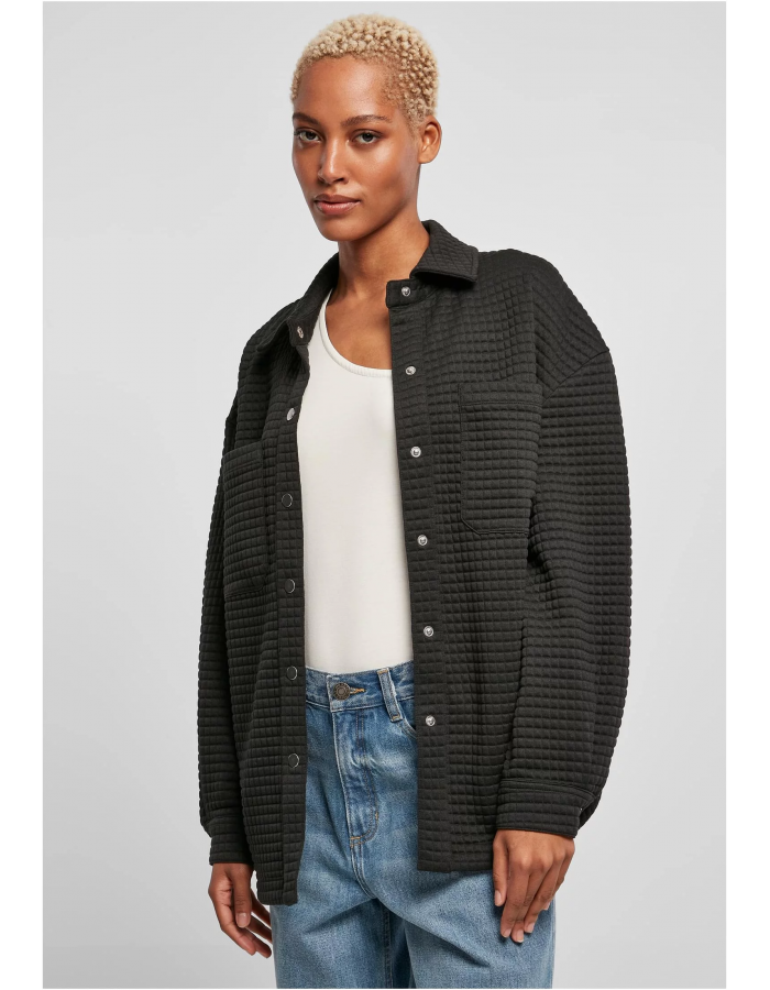 Tato prošívaná košilová bunda vyrobená z tkaniny podobné žerzeji zaujme svým stylovým a praktickým vzhledem. Klasický vzhled tohoto saka ve stylu košile umožňuje smíchání a sladění s některými základními věcmi z vašeho šatníku. Tato košile má zapínání na knoflík a dvě náprsní kapsy. Je to všestranný oděv ideální pro většinu ročních období, protože je perfektní jako vrstvený kousek do chladnějšího počasí, stejně jako vhodný pro různé příležitosti, jako je cestování, procházky městem, výlety nebo dovolené.