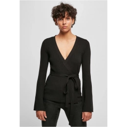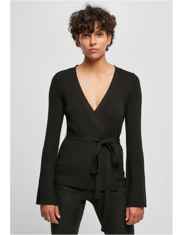 Dámský jednobarevný dámský úpletový top, který se nosí klasicky omotaný a který si drží tvar díky malému knoflíku na vnitřní straně. Pásek doplňuje outfit jako harmonický detail. Zavinovací kardigan navíc nabízí výstřih do V a široké rozšířené rukávy, které obohacují vzhled. Top je vyroben z akrylu, viskózy a nylonu a má pohodlný regular fit.