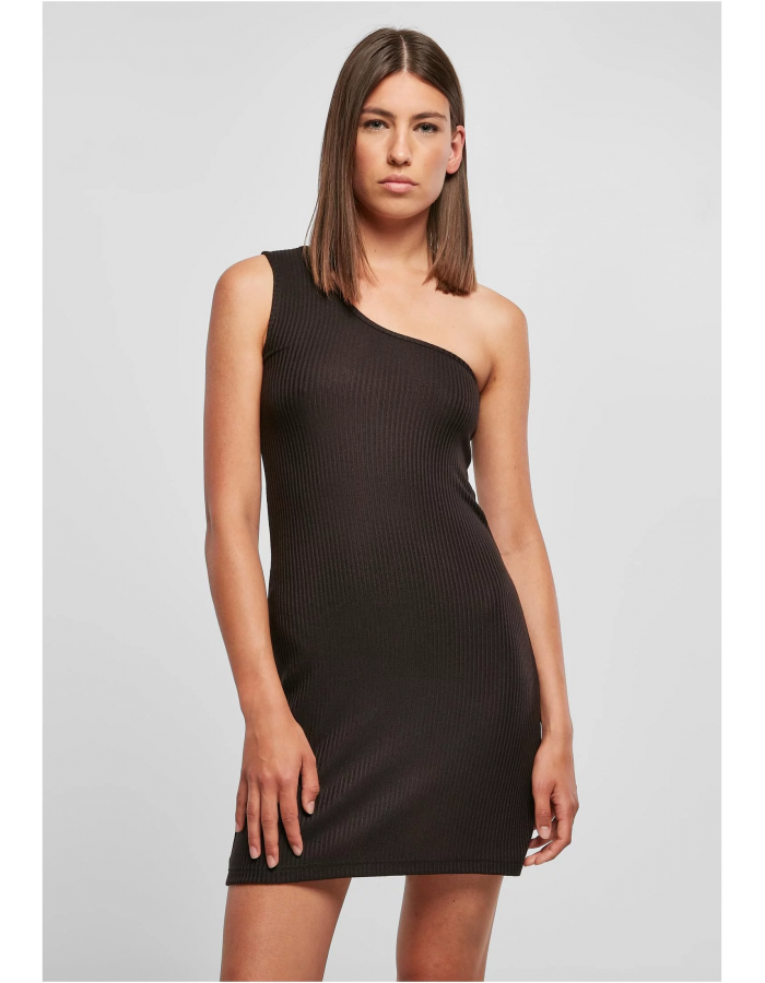 Silné, ženské a naprosto trendy: tyto jemné žebrované šaty nechávají jedno rameno zcela volné a umožňují okouzlující pohled na záda. Šaty mají krátký střih a úzký střih. Látka je chytře vyladěná směs viskózy a polyesteru.