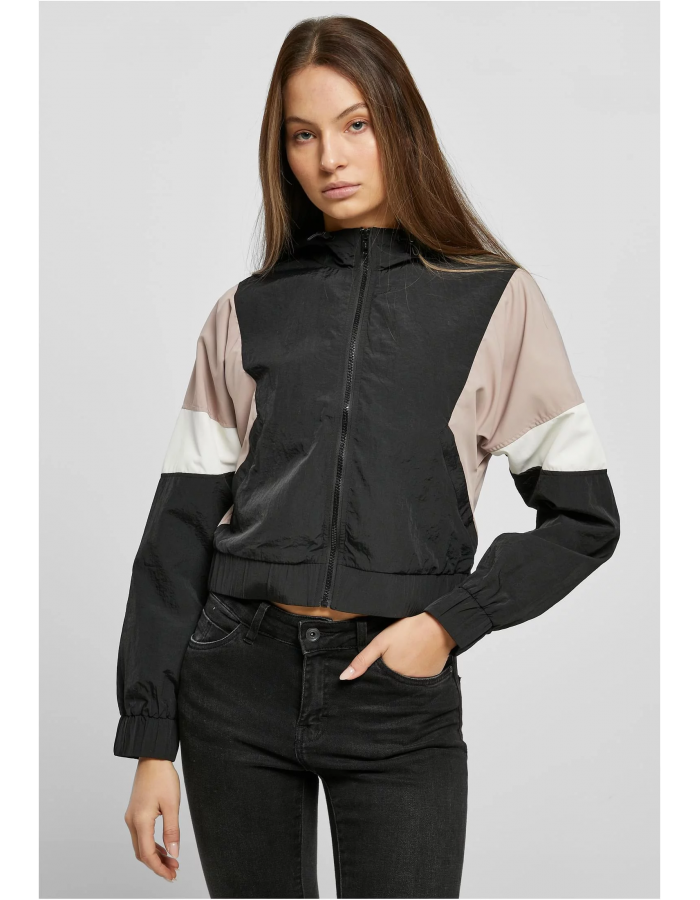 Dámská krátká 3-barevná mačkaná bunda černá/duskrose/whitesand 5XL