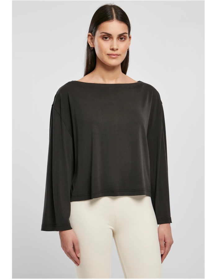 Dámský krátký modální výstřih Bateau s dlouhým rukávem černý S