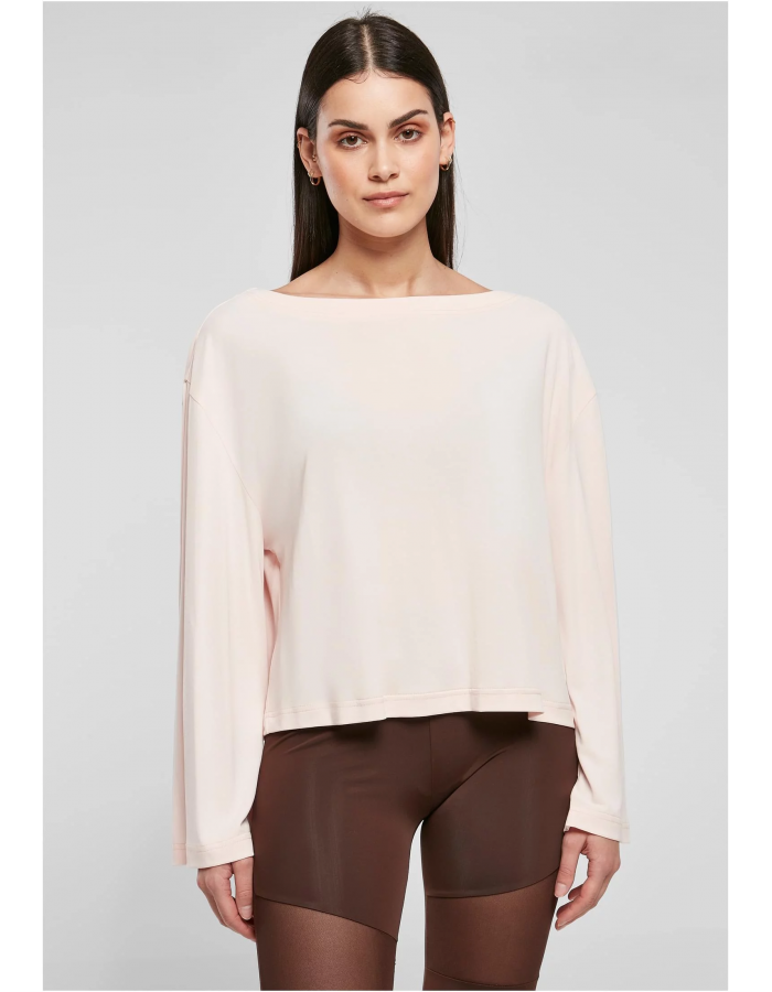 Tento dámský dlouhý rukáv, vybavený rozšířenými zvonovými rukávy a širokým rovným výstřihem, ukazuje svou ženskou stránku. Její splývavý tvar dokonale podtrhuje použitý oversize střih se spadlými rameny. Dámský top je vyroben z lehké a splývavé modalové tkaniny a polyesteru.
