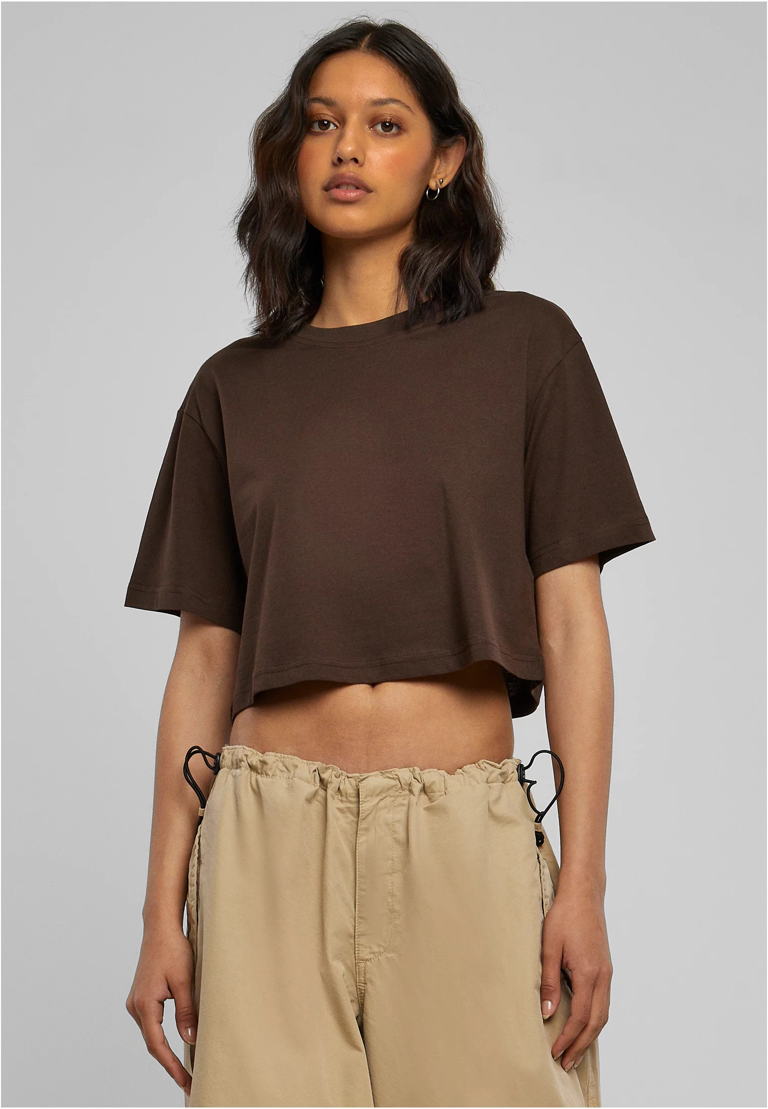Dámské krátké oversized tričko hnědé barvy