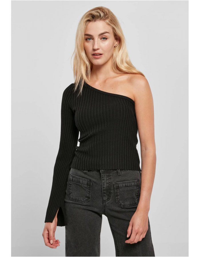 Pokud jste fanouškem svetrů na rameno, tento top vás určitě nadchne. Náš asymetrický svetr je skvělým doplňkem jakéhokoli stylingu. Díky žebrovanému úpletu vypadá tento top přes rameno perfektně i bez šperků.