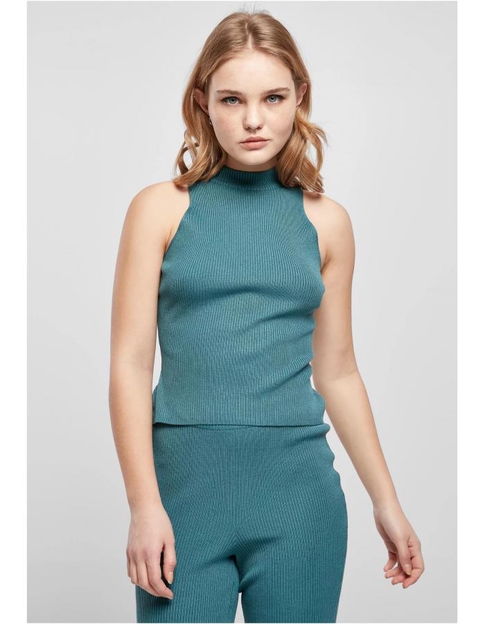 Tento elegantní dámský úpletový top se prezentuje jako decentní klasika v nadčasovém tvaru. Je bez rukávů, má jemný rolák a má krátkou délku těsně pod boky. Slim fit střih také vytváří skvělou siluetu. Top je vyroben z jemné žebrované tkaniny (polyakryl, viskóza a nylon) a je bez manžety.