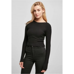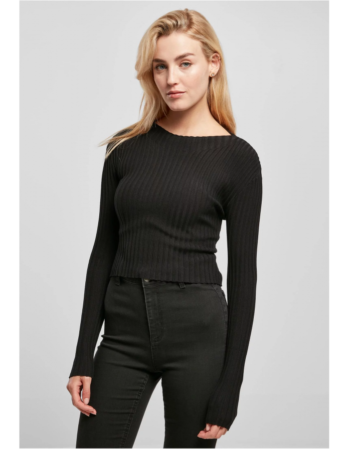 Dámský svetr s krátkým žebrovým úpletem - černý Velikost: 3XL