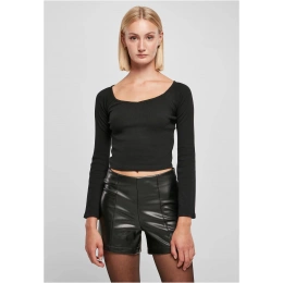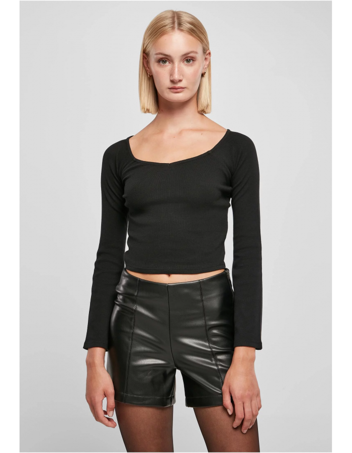 Dámský dlouhý rukáv s krátkým žebrem a širokým výstřihem do V, černý L