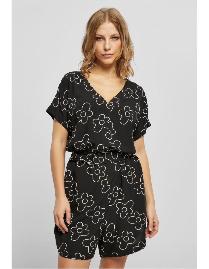 Dámský krátký overal s viskózovým páskem blackflower S