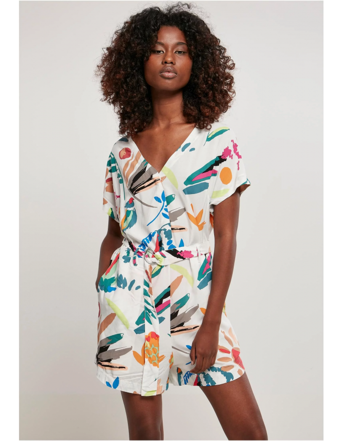 Dámský overal s krátkým viskózovým páskem v bílé pískově ovocné XXL